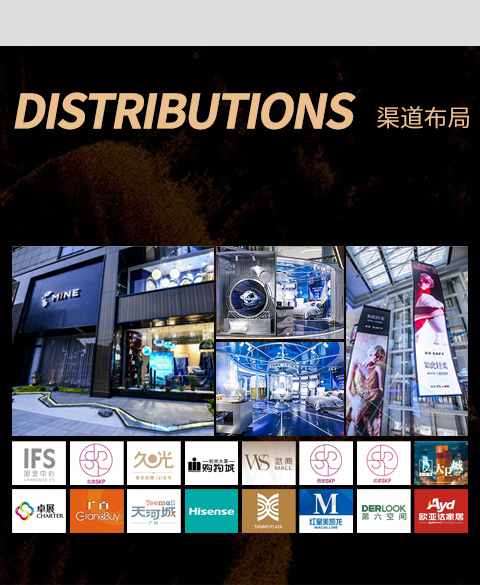 全球顶级百货入驻:北京SKP / 杭州大厦 / 上海久光 / 成都SKP/ 武汉国际广场 / 青岛海信广场 / 长沙IFS/贵阳万象城。