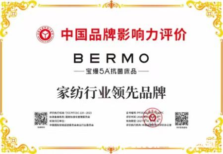 近日,凭借卓越品质与强大品牌影响力,宝缦(BERMO)5A抗菌床品通过国家权威评价认证,正式荣获“家纺行业领先品牌”称号,彰显了中国品牌在健康睡眠领域的标杆力量。